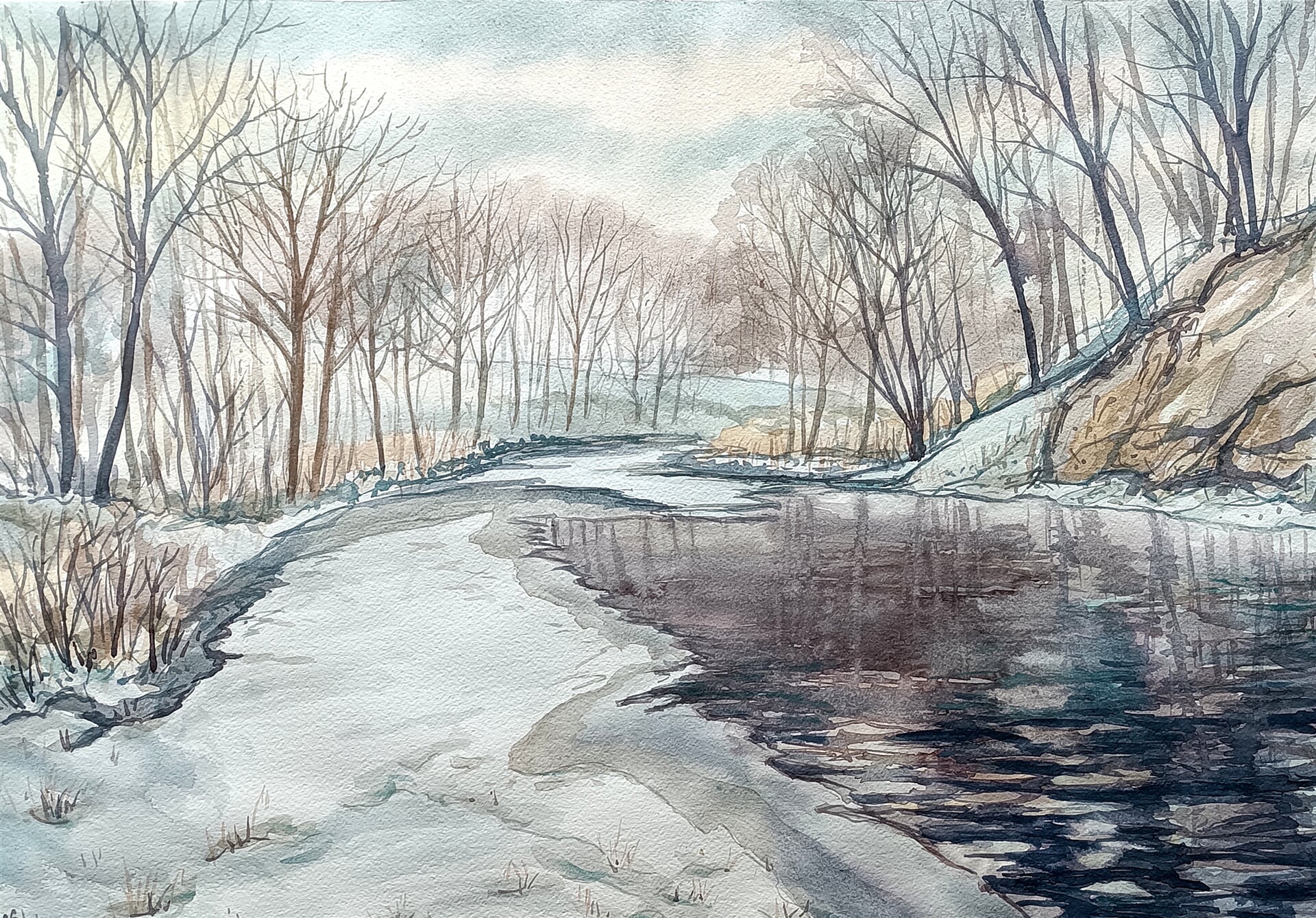 Vendryně, zimní Olza
